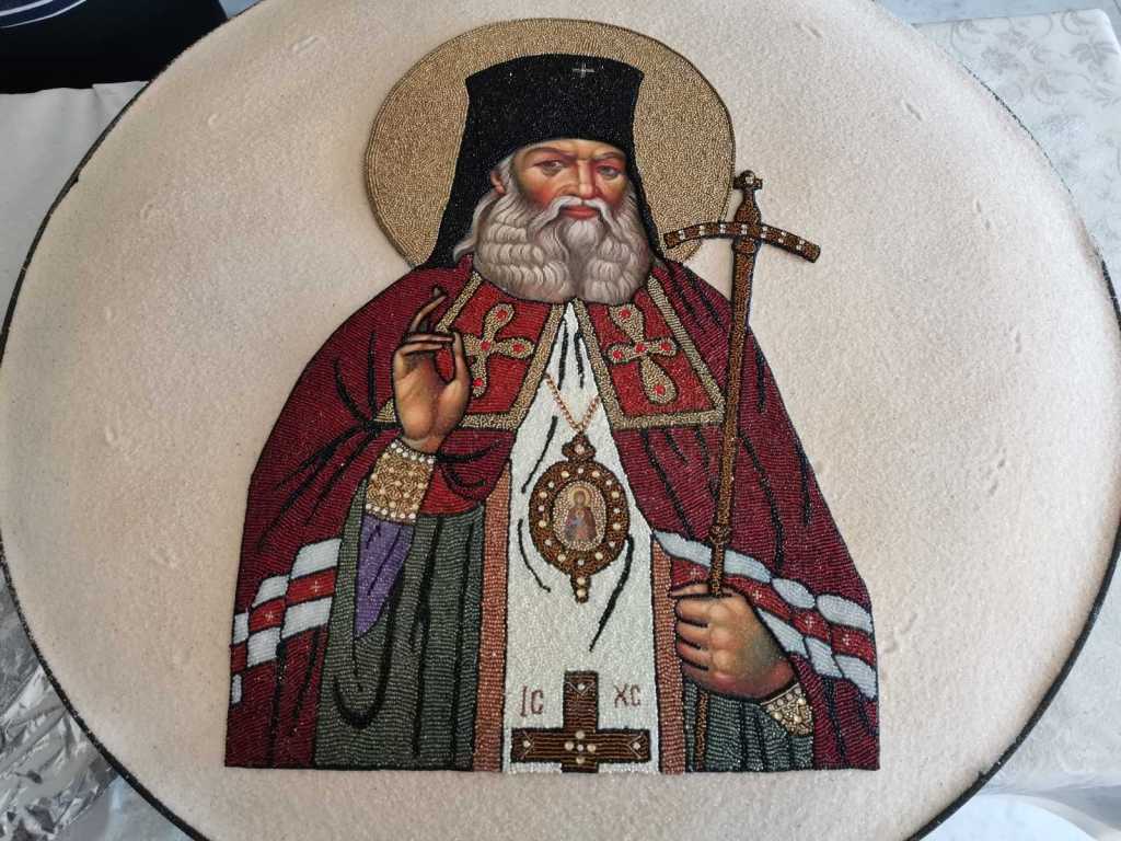 Είχα την χαρά και την τιμή να γνωρίσω από κοντά την κυρία Χ. Κ. από τη Λεπτή του Βορείου Έβρου, η οποία συνηθίζει εδώ και περίπου δέκα χρόνια να τιμά τους Αγίους φτιάχνοντας τα κόλλυβά τους με έναν ιδιαίτερο τρόπο. Η αγάπη της και η ευλάβειά της προς κάποιους Αγίους την έκαναν να σκεφτεί και να «εφεύρει» έναν ξεχωριστό τρόπο, τον οποίο αξίζει νομίζω να παρουσιάσουμε ώστε να γίνει γνωστός σε όσο γίνεται περισσότερους ανθρώπους. Η κυρία Κ. Χ. μου ζήτησε να διατηρήσουμε την ανωνυμία της και δέχτηκε μετά χαράς να μοιραστεί μαζί μας την «τέχνη» της ετοιμασίας των κολλύβων προς τιμήν των Αγίων. Αφιερώνει πάρα πολύ χρόνο (3 μήνες περίπου) για να ολοκληρώσει τη μορφή του Αγίου που φτιάχνει με διάφορες χάντρες μικρές και μεγάλες, διαφόρων χρωμάτων τις οποίες κολλάει μια-μια με πολλή υπομονή πάνω σε καμβά όπου έχει τυπωθεί προηγουμένως η μορφή του τιμώμενου Αγίου.